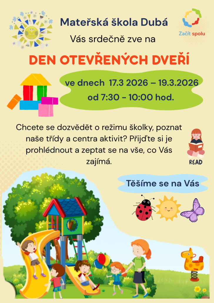 Zápis k docházce do mateřské školy v Dubé Zápis dětí do mateřské školy se bude konat 24.3.2026 (úterý) v době od 9,00 – 13,00 Podat přihlášku musí všichni zákonní zástupci, jejichž děti budou nastupovat do mateřské školy ve školním roce 2026 – 2027. Pro děti, které dovrší 5 let od 1.září 2026 je vzdělávání v […]